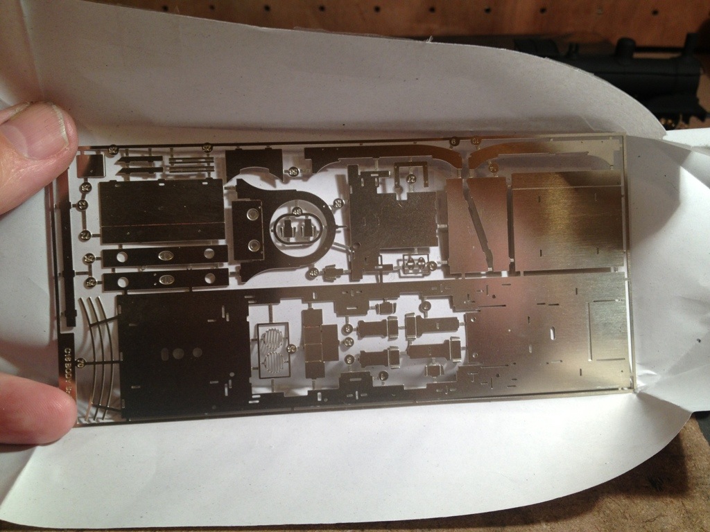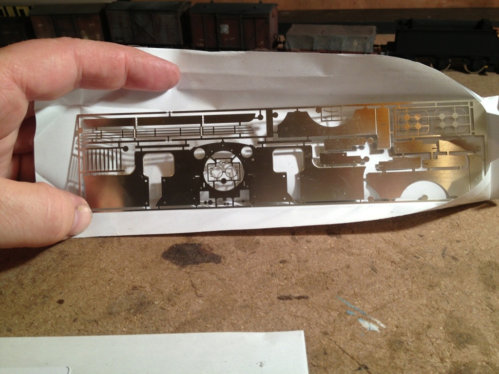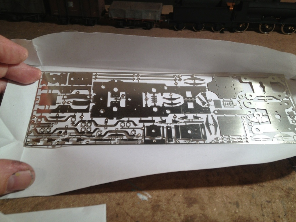 Inside are a fabulous collection of nickel silver etches, first off; the quality is readily apparent upon viewing and the chassis frames are a simple fold-up which should help the achievement of square chassis assembly.
