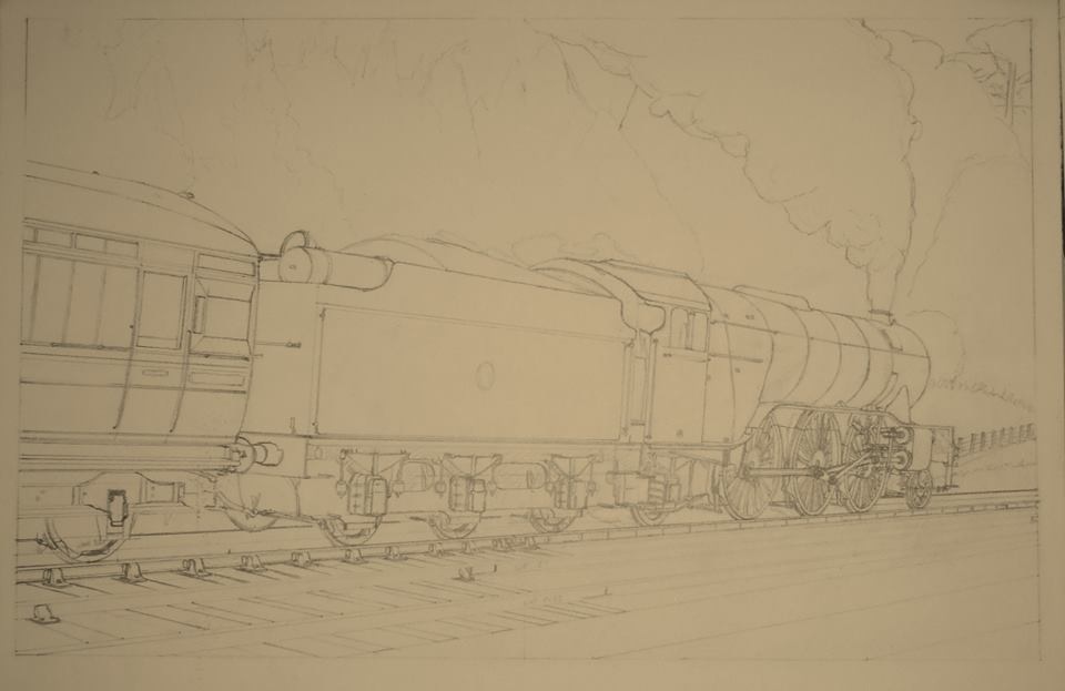 My friend Iain MacIntosh is working on another of his excellent pencil drawings. This one, like the last is of a Gresley V2 class, but this time on a Waverley Route passenger working.