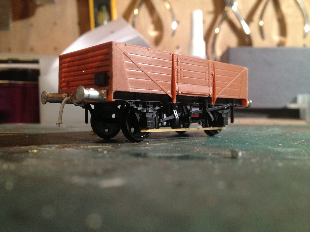 I then tackled the underframe and brake gear, replacing the plastic shaft with brass wire and adding brass L section to replace the moulded tie bars as I mentioned yesterday.