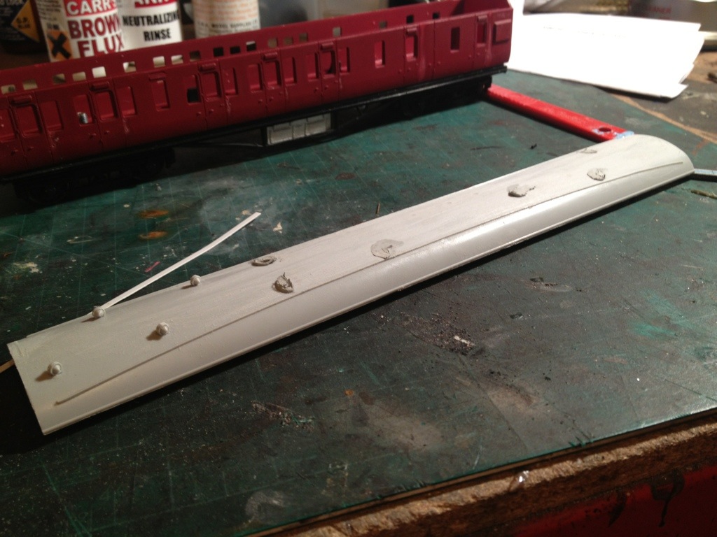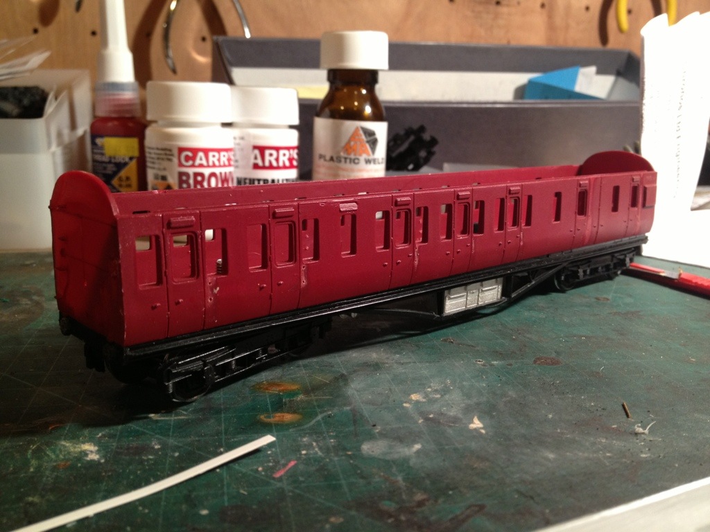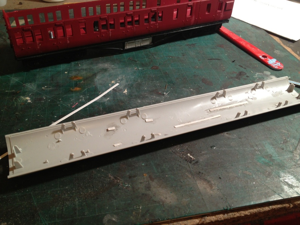 Comet cast underframe parts replaced the old 1970s vintage mouldings, the sides have been drilled out to receive grab rails and the vent holes in the roof have been filled pending re-drilling so the torpedo vents can be mounted in the correct configuration.