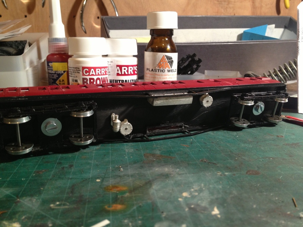 Modifications include replacement of the bogies with Bachmann version which were easily re-wheeled with EM sets.