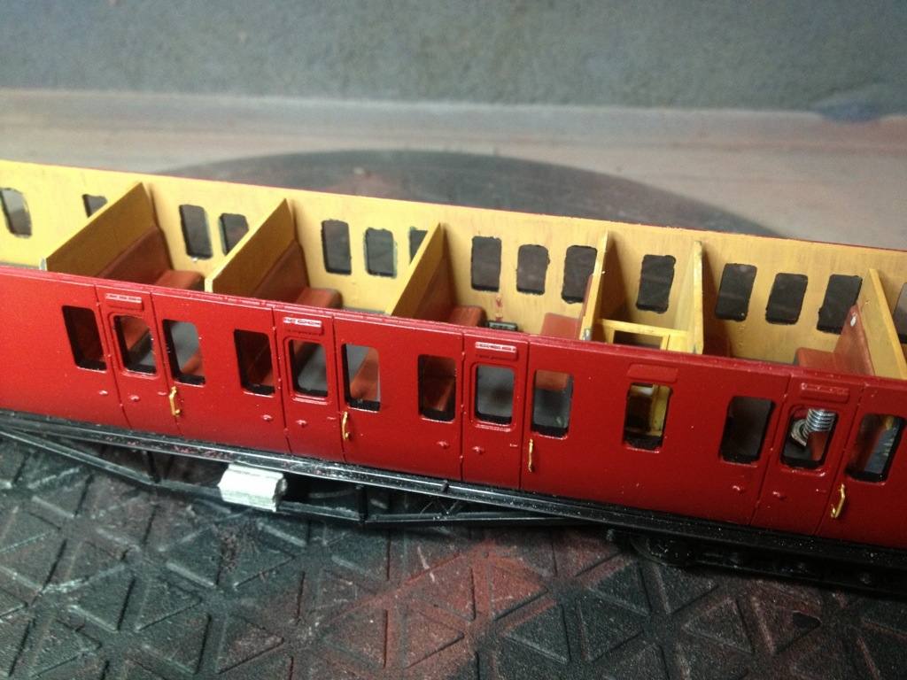 I’ll allow it to settle and cure a day or two before I visit that and meantime I have busied myself painting up the interior. I’ve no idea if these colours are truly authentic but I actually used Lifecolor brake dust (acrylic) for the interior cream as I’m pretty sure that the interior finish would have discoloured to the kind of dirty yellow seen here pretty quickly not only on account of the environment of the steam railway but also due to the universality of the smoking habit in the 1950s!