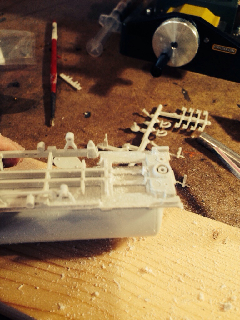 I plan doing this one with Bill Bedford sprung axleguards and this meant some butchery underneath, carried out using the Proxxon and a milling tool set to 7000 rpm.