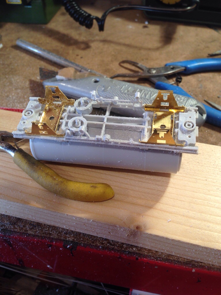 The first end was taken down a bit thin and I ended up cutting out part pf the solebar but no problem, easy to reinstate. Worked ok at the other end too though you have to remove parts of the internal framing to accommodate the BB units.