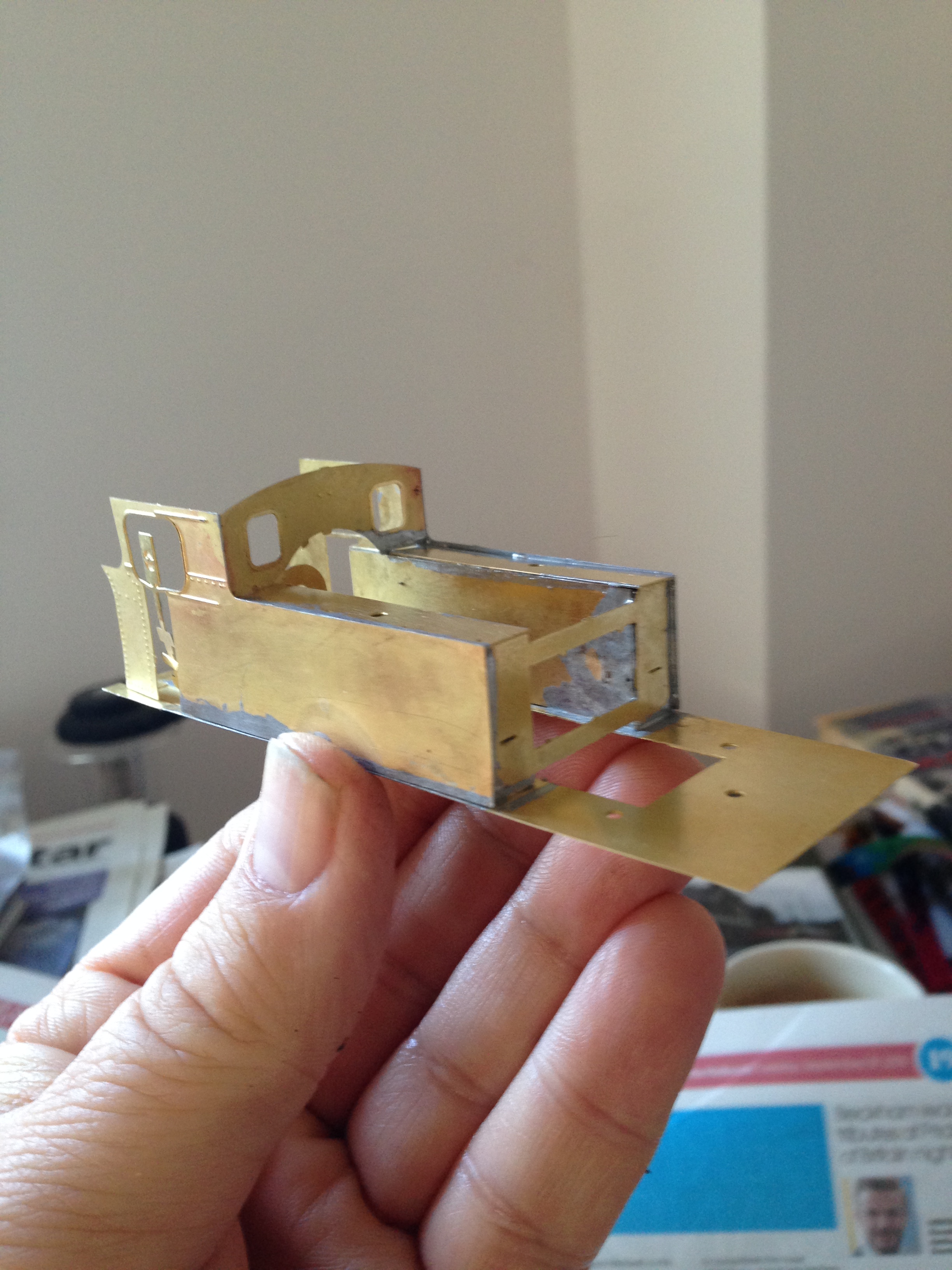 The locomotive superstructure is made of etched brass with smaller fittings of cast brass and white metal/pewter for the heavier castings. The tanks/sides and boiler have been designed to bolt together in order to hold them in correct alignment to solder. Slots and tabs are well executed and assist in making all sub assemblies nice and square. Care is still required though but if you take your time and prepare each stage, this kit won’t cause you any real angst. So far, despite only one previous and as yet incomplete etched loco under my belt, I am enjoying every second spent building this kit. In fact I have to make myself stop rather than keep going all night with it!