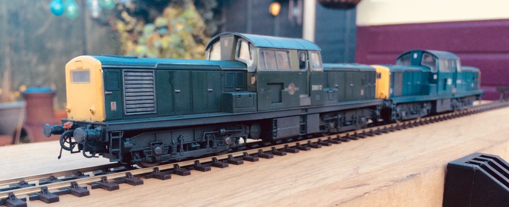 Also lying at the back of a drawer were two Claytons, non-runners since new which I eventually, two years back found suitable replacement chassis for. Along with two sisters in early livery who had been EM configured but subsequently returned to OO, the locos were equipped with nice new finescale buffers and suitably less than spotless Clayton state of presentation!